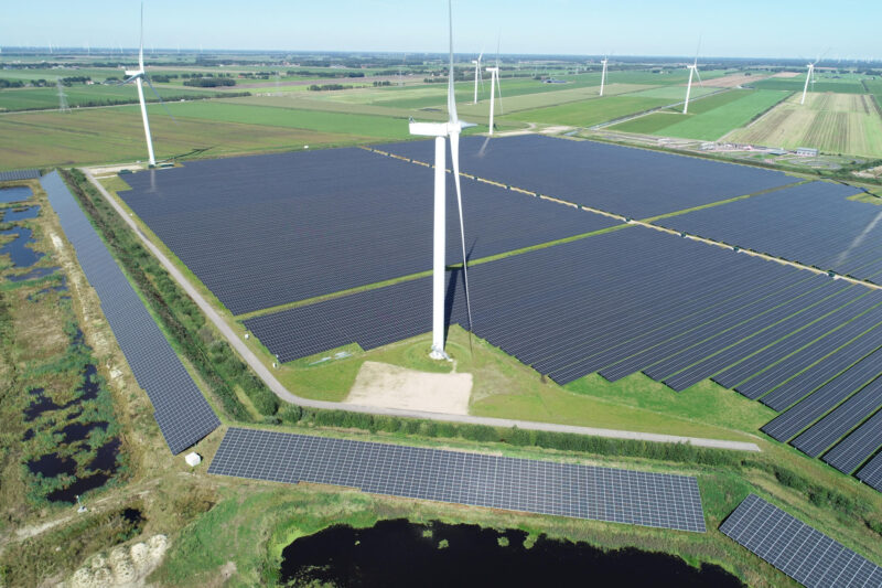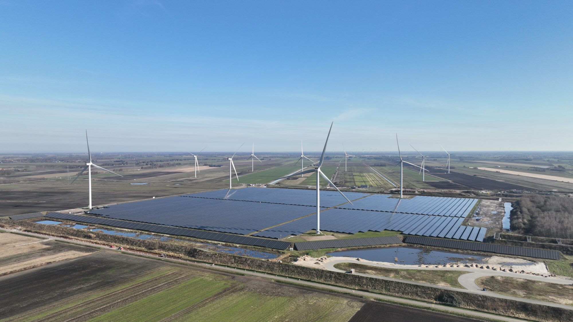 Uniek hybride energiepark waar zon en wind samenkomen.